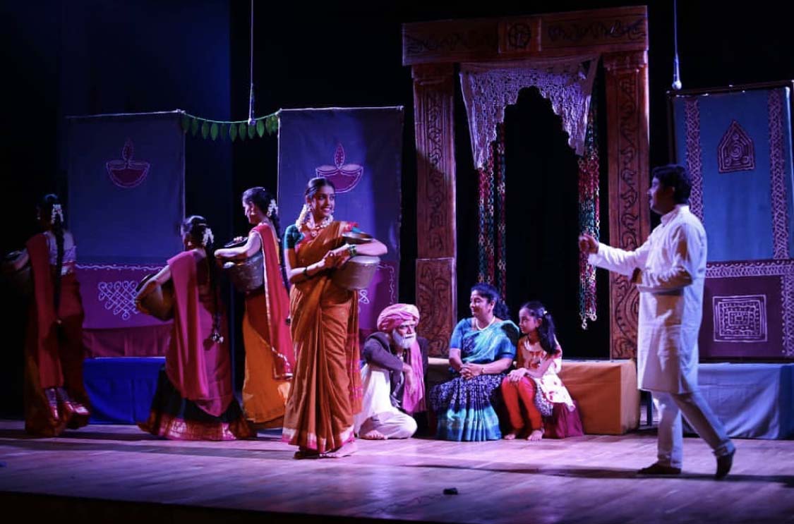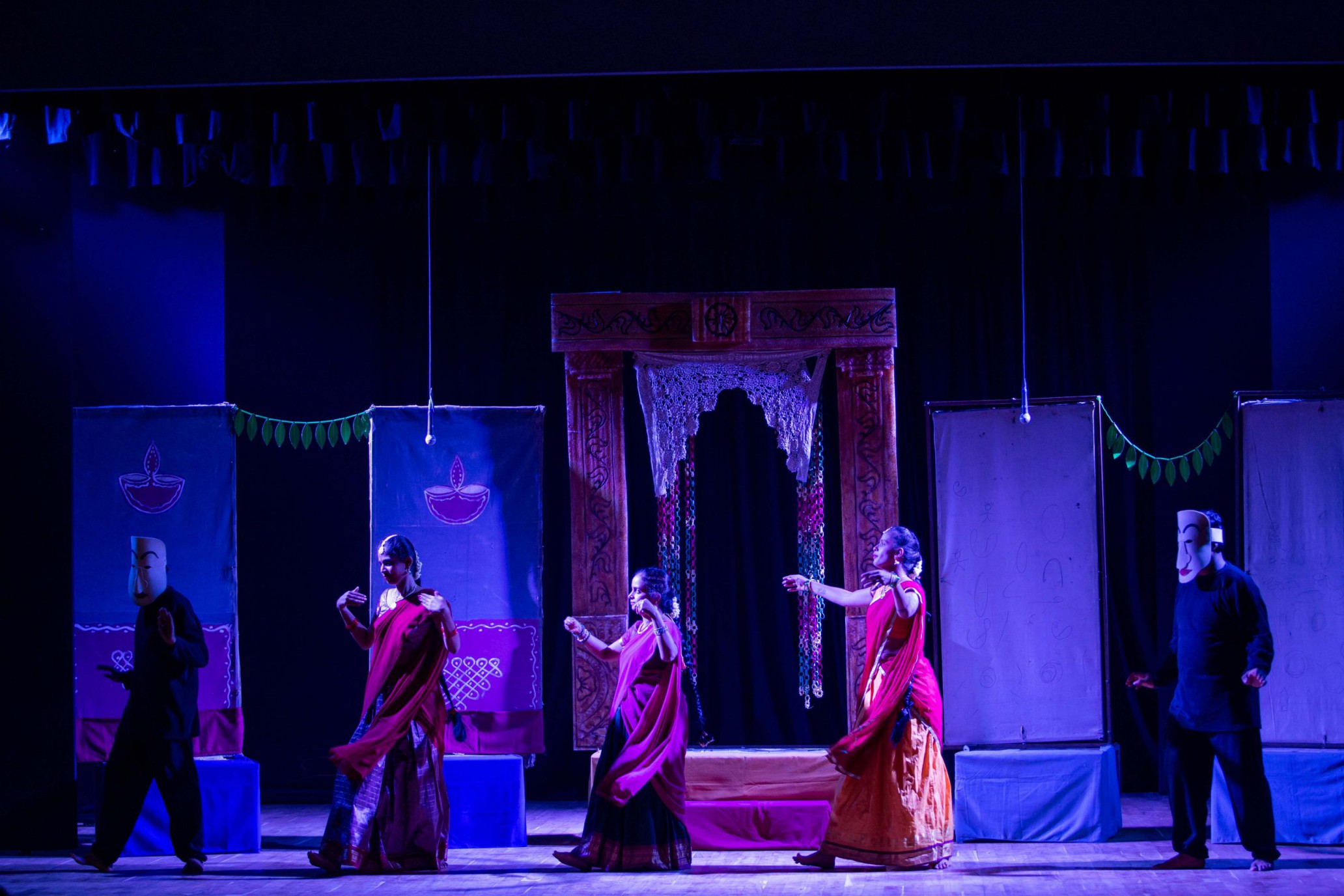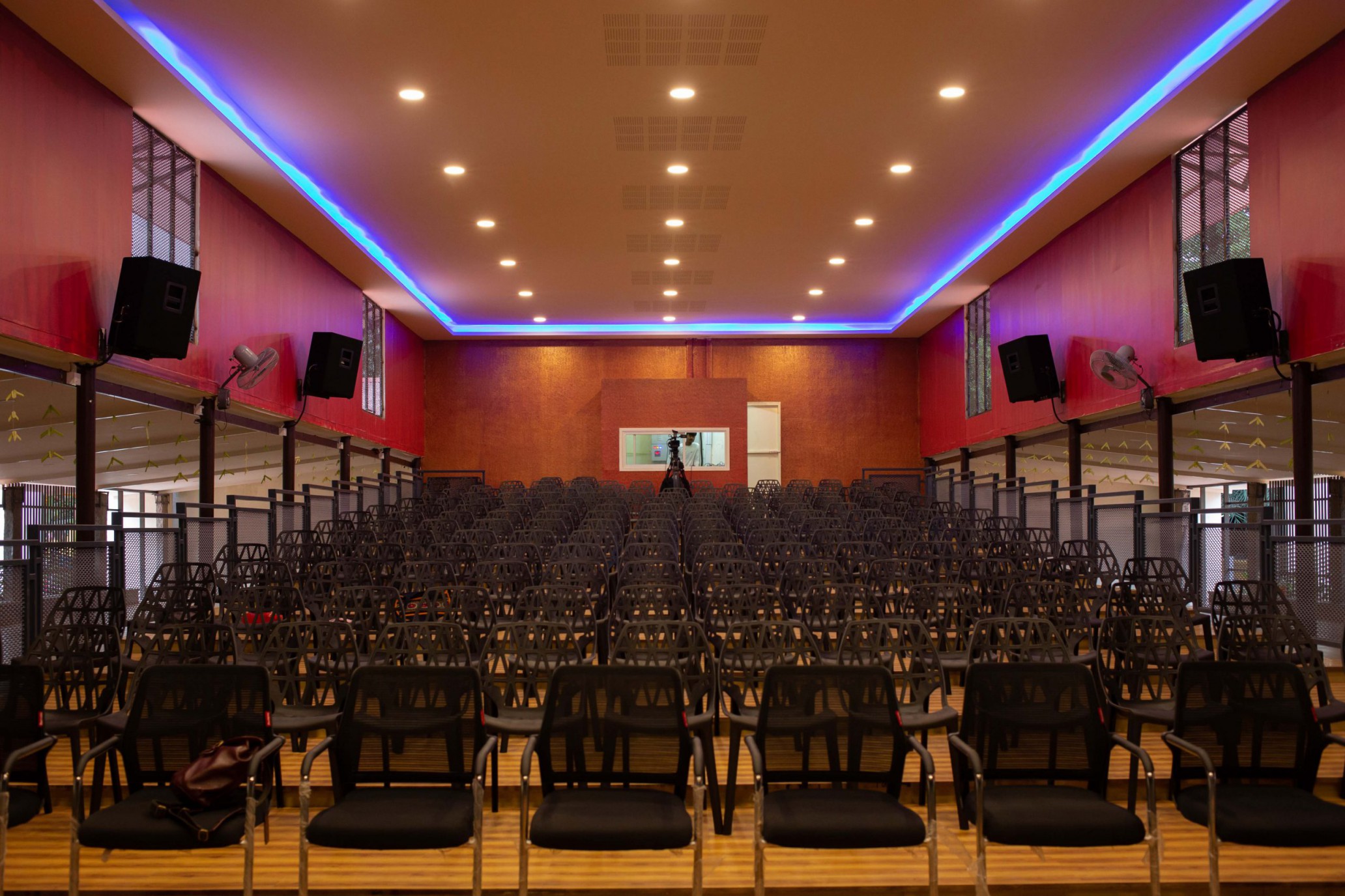 Damru is the newest space for performances at Shankaraa, designed especially for theatre and classical performances. A traditional proscenium stage set up, complete with moveable risers, state of the art sound and light equipment, green room space, and seating for about 300 people, this beautiful auditorium was designed for professional performances. In addition to stage performances, Damru can also host art exhibitions in a long gallery space flanking the main stage area.