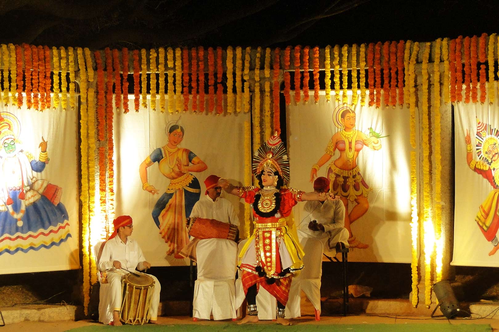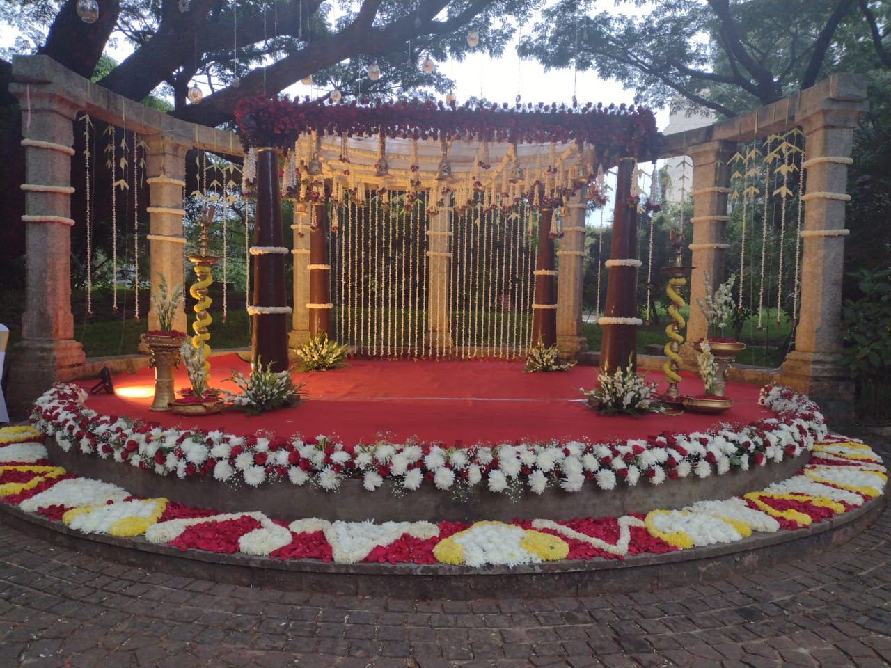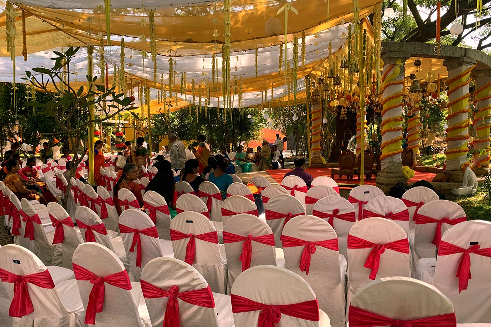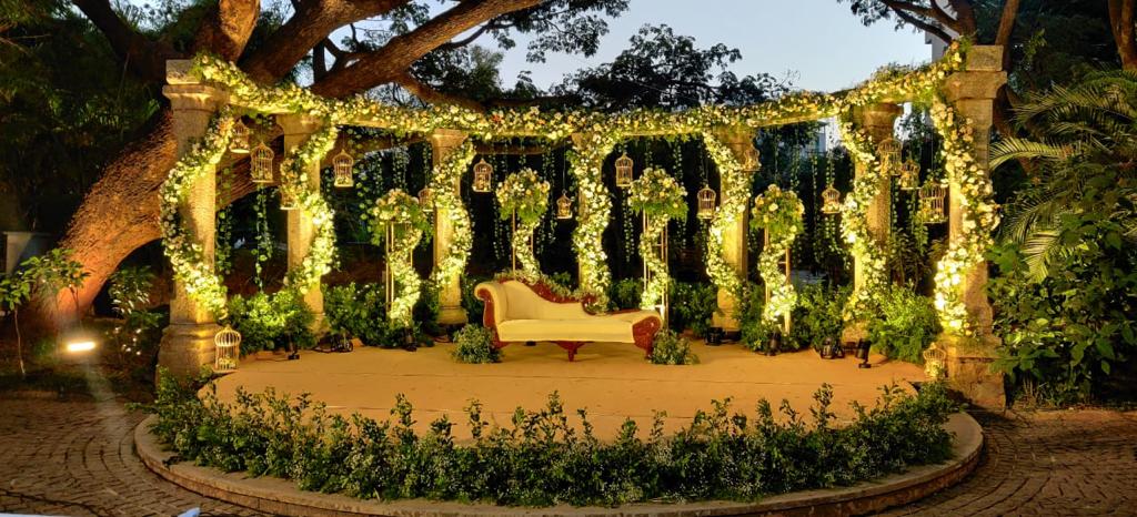 Indradhanush is a mini amphitheatre; a performance space framed by a rustic stone arch and seven pillars surrounded by a canopy of sheltering trees. This space is perfect for gatherings between 300 to 500 people. The intimate space, the warm combination of lush greenery, and romantic stone makes the space perfect for theatre, music concerts or even private socio-cultural events.