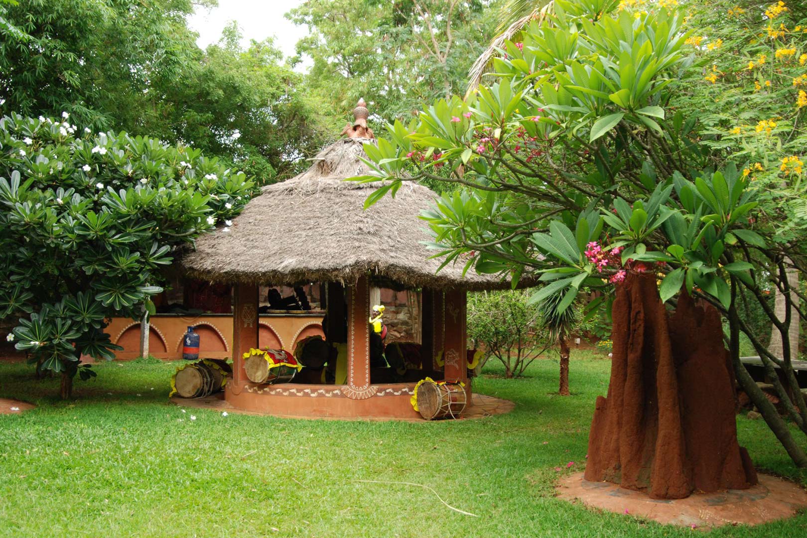Situated about a kilometre away from Shankaraa, Rudraksha is a space imaginatively transformed to showcase the diverse art and culture of rustic India against a canvas of thriving ecology. In the midst of its lush surroundings, Rudraksha is a space designed specifically for visiting tourists and delegations- housing a rustic stage where traditional performances are staged. The space is used to entertain corporate guests and delegations in an evening of culture and cuisine.